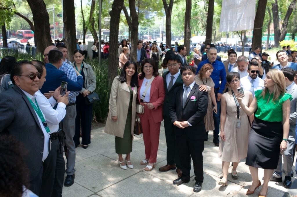 Al igual que cientos de personas, trabajadores, senadores y visitantes, la legisladora atendió las indicaciones de las brigadas de Protección Civil.