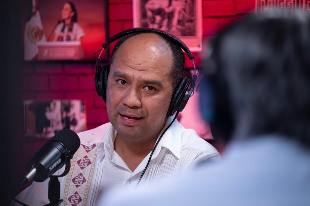 Alejandro Robles, secretario de Mexicanos en el Exterior, acompaño a Luisa María Alcalde, presidenta de nuevos Partido-Movimiento, Nora Ruvalcaba, senadora de Aguascalientes, Alejandro Robles y a Gerardo Esquivel, economista y exsubgobernador del Banco de México, en el episodio 10 del programa La Moreniza.