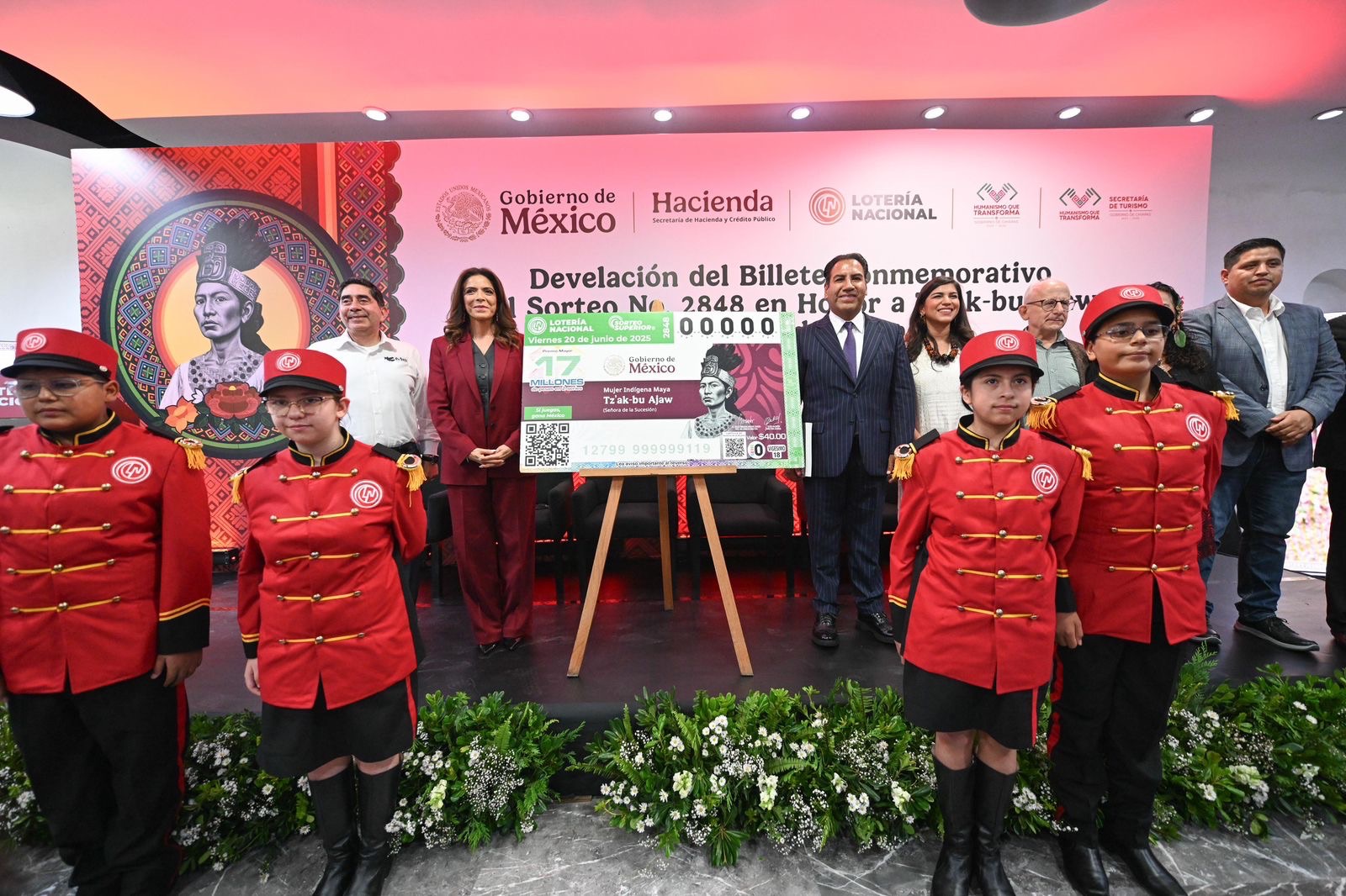 El Gobierno de Chiapas y Lotería Nacional develaron el billete del Sorteo Superior No. 2848 para honrar a la Mujer Indígena Maya, conocida como la Señora de la Sucesión o Reina Roja, que tendrá lugar el próximo 20 de junio en la estación del Tren Maya de Palenque, que forma parte de la estrategia de sorteos foráneos para acercar la tradición de la suerte al interior de los estados, así como impulsar el turismo local y reconocer el patrimonio nacional.