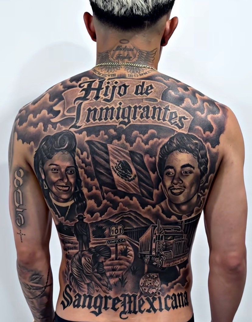 A diferencia de Javier Aguirre y los directivos del futbol mexicano que se llenan los bolsillos de dólares con estadios llenos de migrantes en California, Texas o Florida, Julian Araujo, de 24 años, nacido en California, hijo de migrantes, puso la espalda, pero no para despreciar, sino para dar un contundente mensaje con un tatuaje: