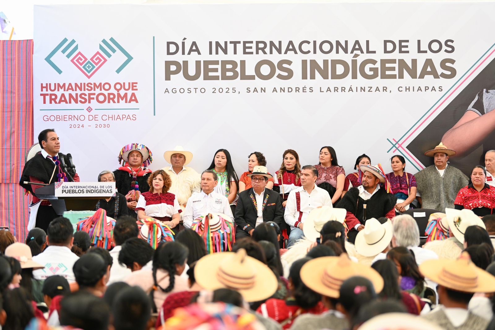En Larráinzar, encabezó la conmemoración del Día Internacional de los Pueblos Indígenas