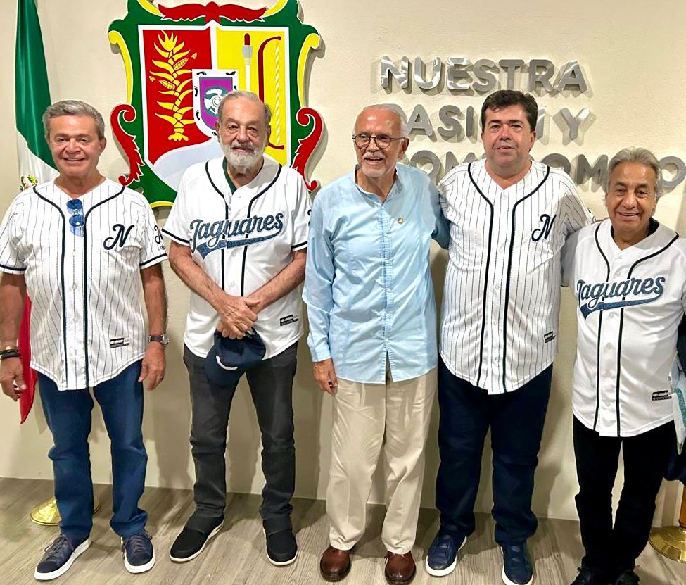 TEPIC, Nay,.- En el encuentro de béisbol entre los Jaguares y los Tomateros, se reunieron Carlos Slim Helú, uno de los empresarios más reconocido en México, y Pedro Haces Barba, el dirigente sindical; así como Miguel Rincón, líder de Bio Pappel, y Carlos Peralta, magnate de Grupo IUSA, con el gobernador Miguel Ángel Navarro Quintero como anfitrión se reunieron.