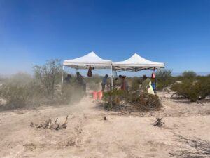 La senadora arribó a las instalaciones de Sierra Hermosa poco antes de iniciar el evento, fue colocada en la zona de invitados especiales, junto con legisladores, presidentes municipales, funcionarios del gobierno estatal y municipal.